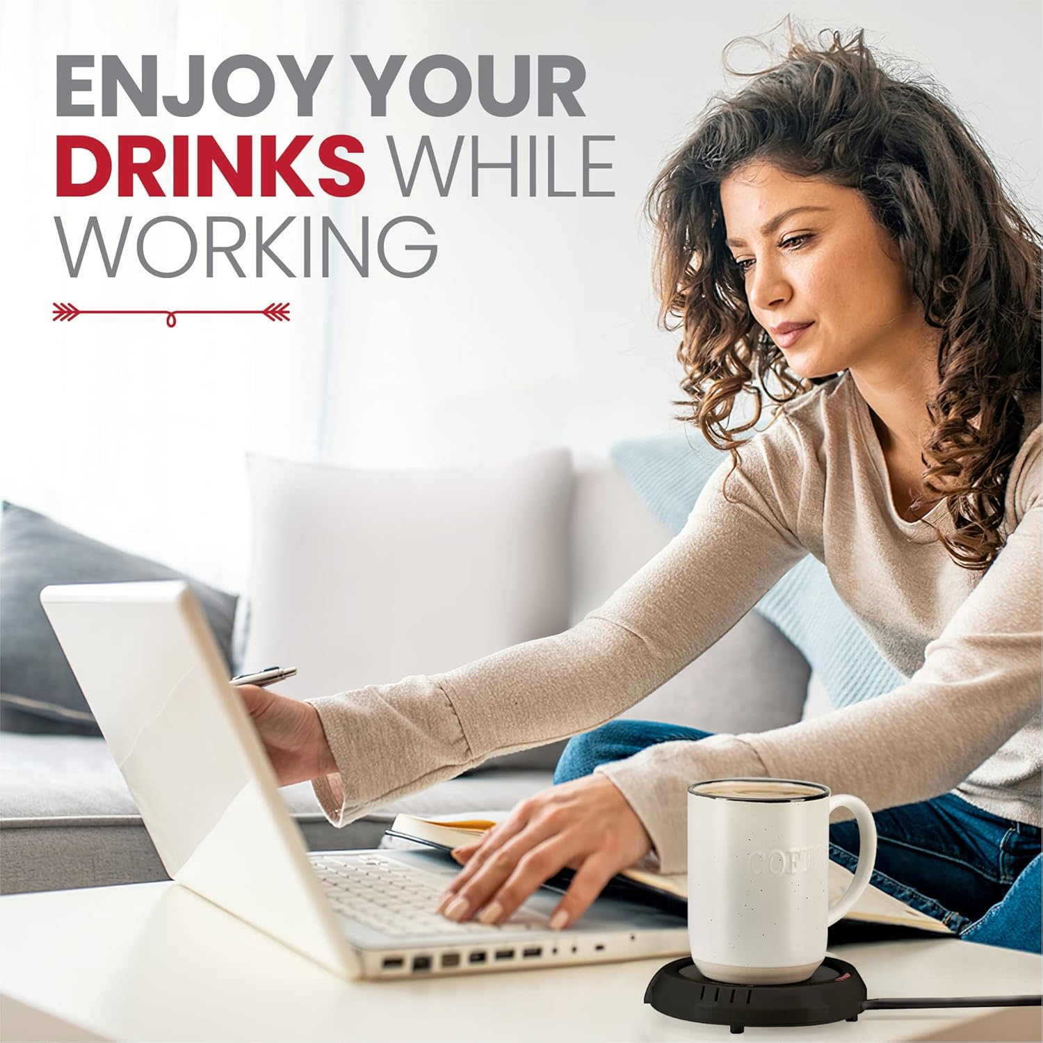 During my morning routine, I set my travel mug on the warmer while I get ready. The warmer keeps my coffee hot enough that I don’t have to reheat it by the time I sit down to work.